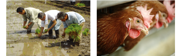 お米のエサを食べた鶏のフンは、お米を育てるときの肥料に。このプロジェクトはすべてのことが円のようにつながる「資源循環型農業」を実現しています。