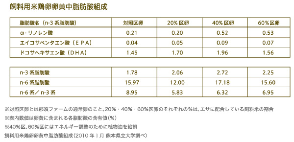 また、最近の研究で、n-6/n-3比を低くすることで炎症やアレルギーが軽減されることが分かっていますが、この八十八卵は、n-6/n-3比が対照区卵より低いという好結果が出ています。